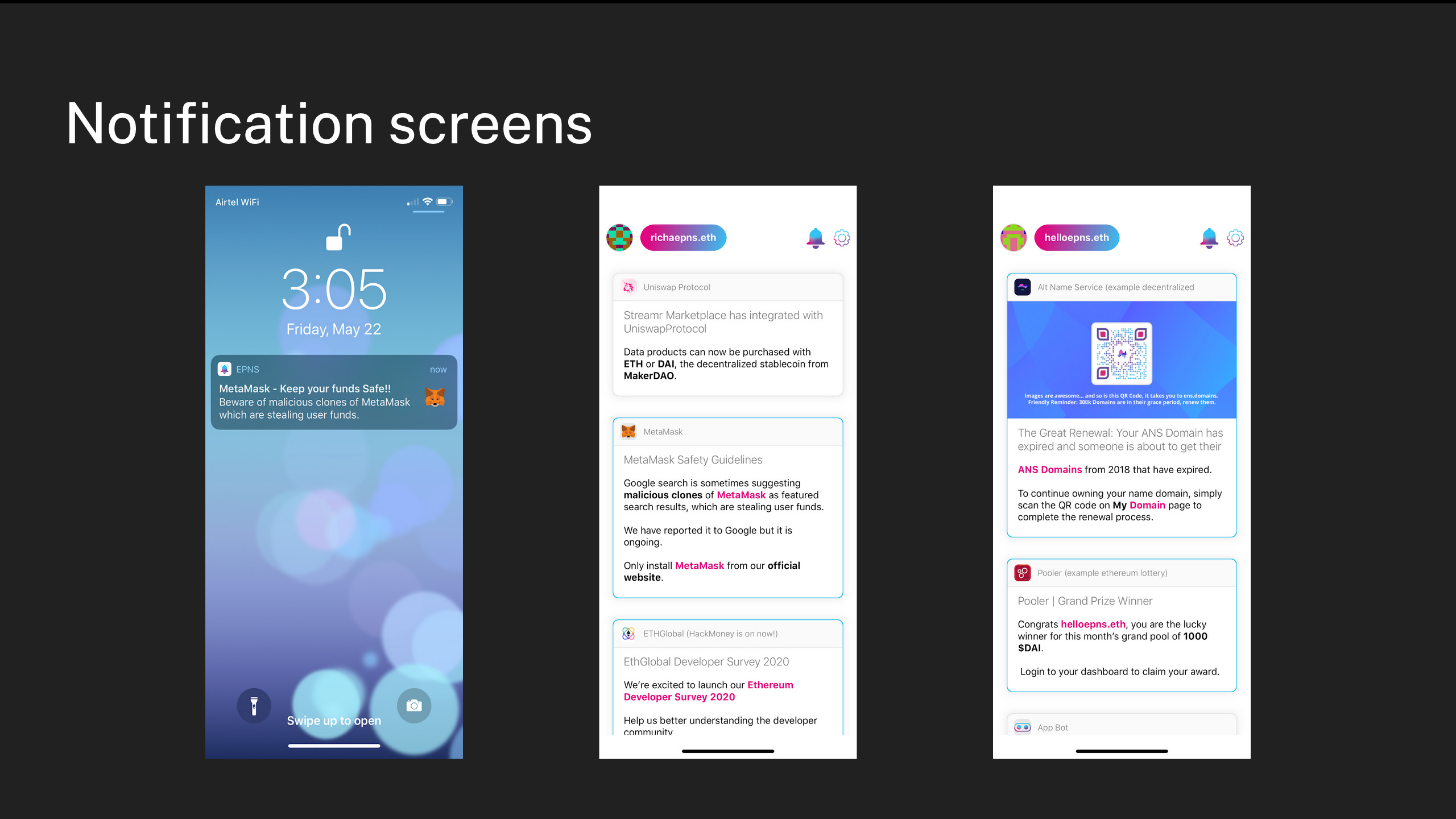 1. Users receives notifications from EPNS protocol to mobile app and prefer that over dApp or desktop notifications or other form of communication