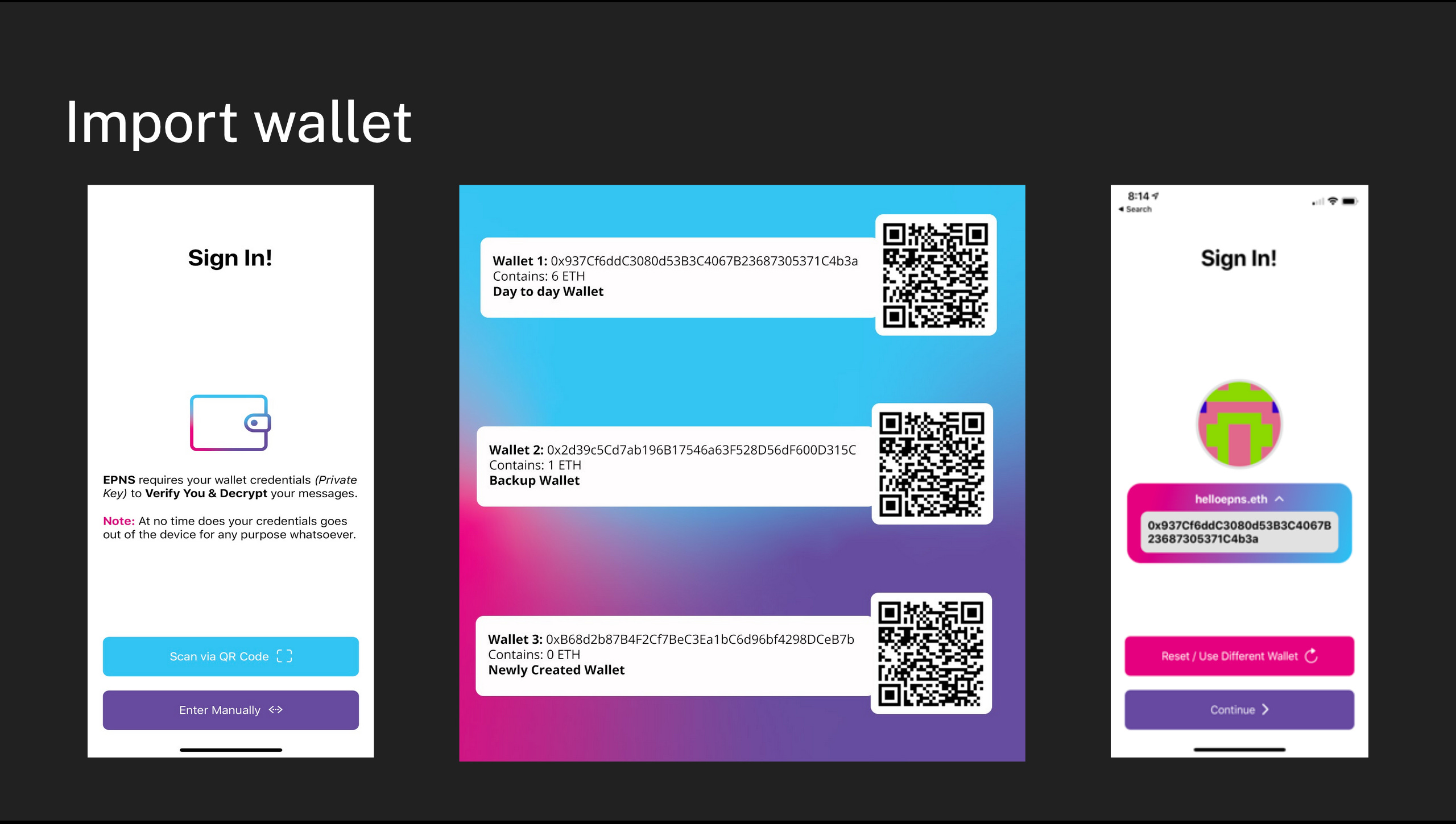 This is already invalidated, but instead, imagine the sign in to now just ask your wallet address. All notifications are received and plain ones are shown on feed though encrypted one will require you to enter your private key if you want to decrypt them and see those.